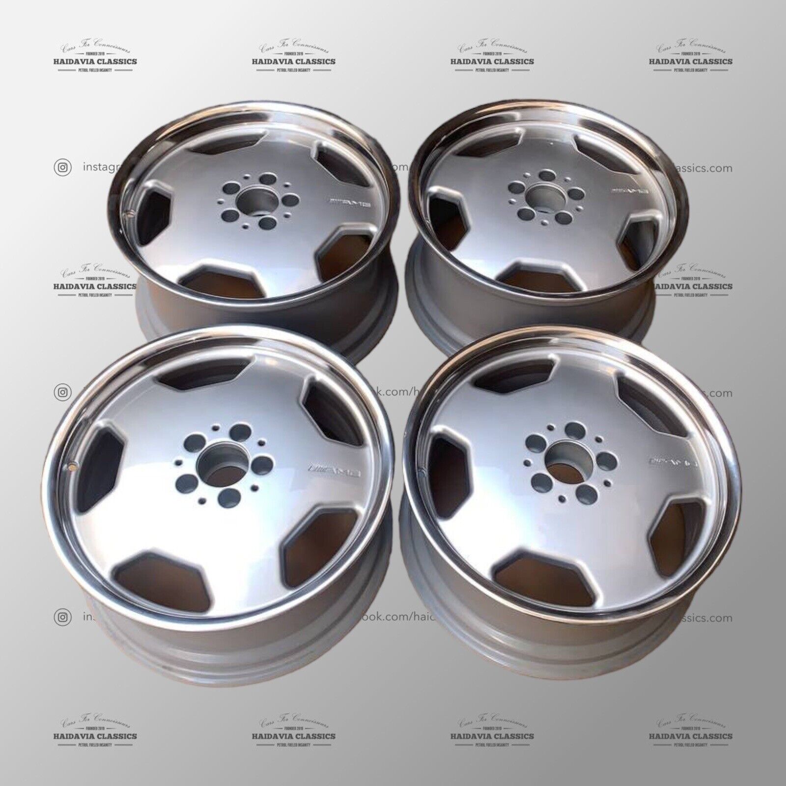 An original set of AMG Aero 2 Monoblock Staggered Rims with a 18 inch diameter.