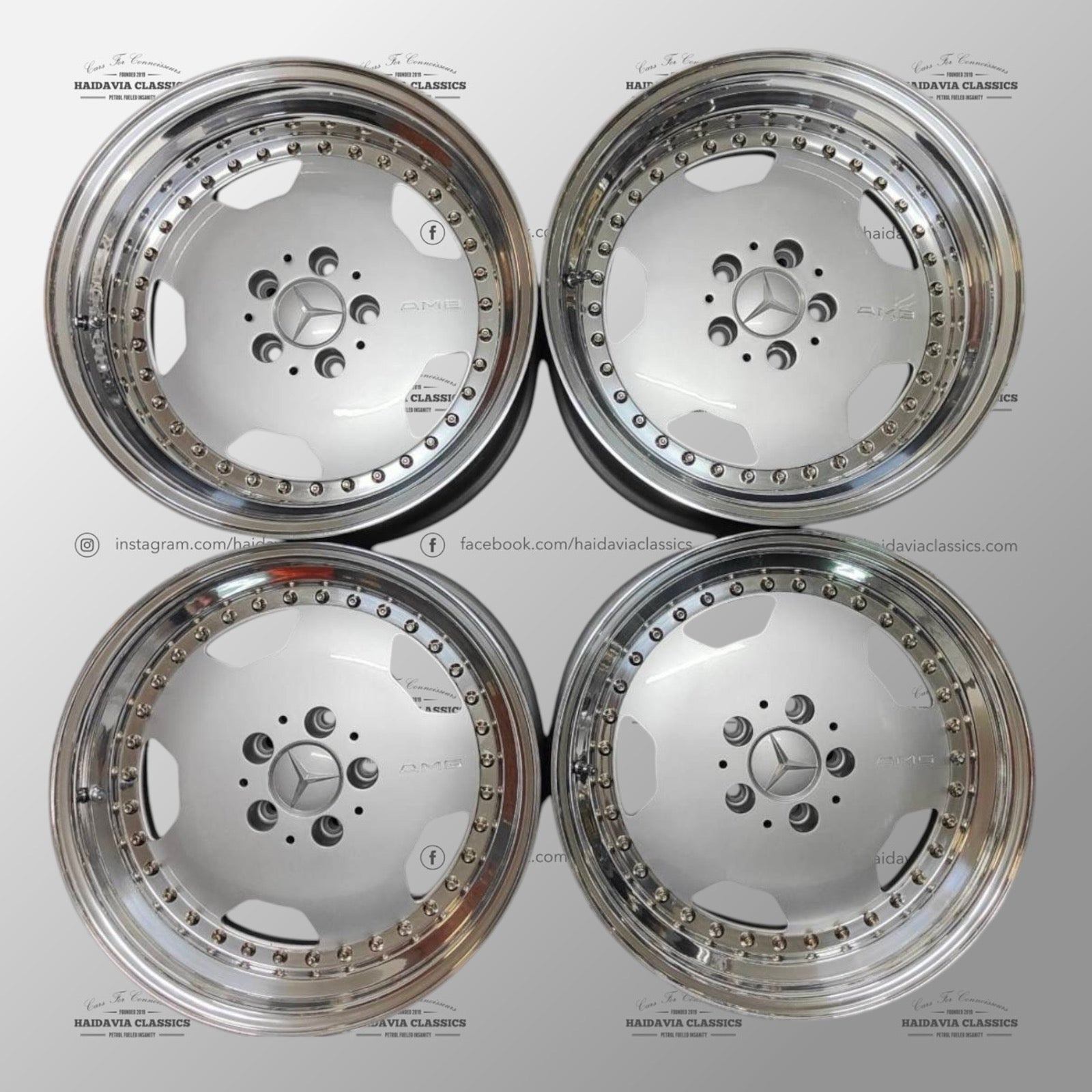 The AMG Aero III rims were originally designed for the W126 S-Class and where curved outward from the center of the rim to accommodate larger break calipers