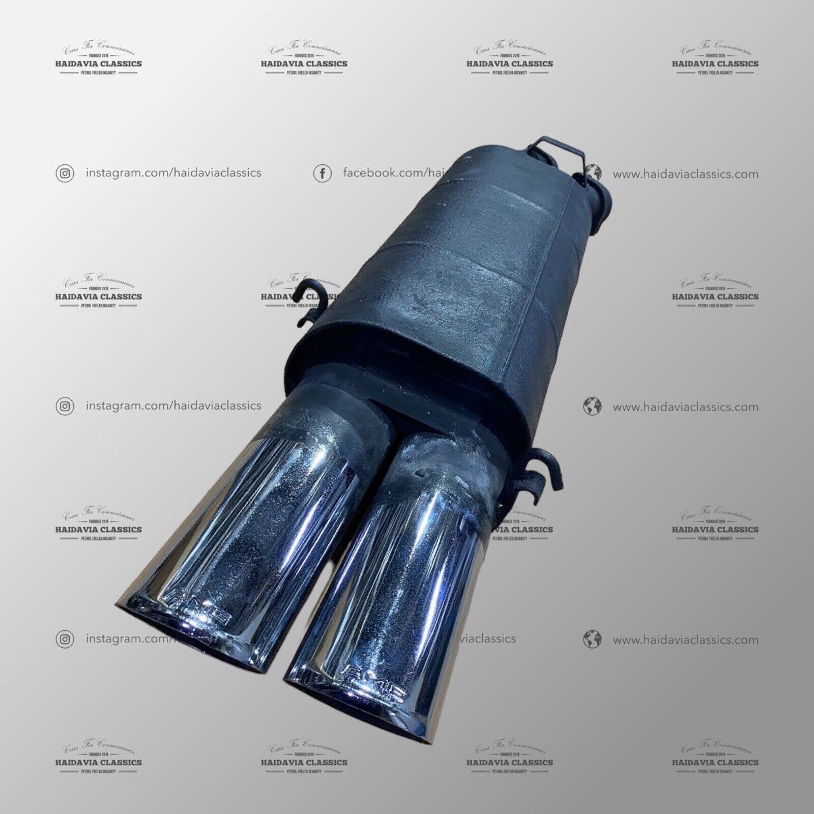 This AMG exhaust was specifically designed to enhance the performance of the C126/W126 (SEC/S) model by Mercedes-Benz. It represents an impressive piece of technology developed in collaboration between AMG and HWA, a company you can learn more about in the 'Storytime' section of our website. The actual production of this exhaust system was carried out by Eberspächer, a specialist in automotive exhaust systems. This Mercedes-Benz AMG NS 004 C126/W126 exhaust muffler is in great condition. If you need a different brand of exhaust muffler or any other C126 part, please feel free to contact us.