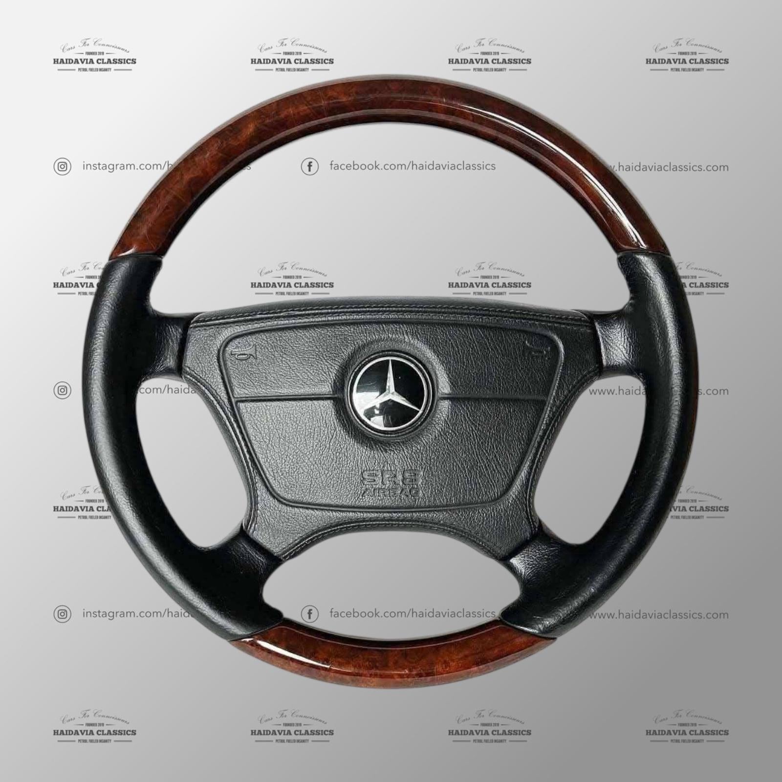 Engineered for late-model W124, W140, and R129 vehicles, this steering wheel brings period-correct opulence and comfort to the driving experience. The tactile feel of the leather provides confident control, while the polished wood accents add a distinguished touch to any interior, especially when paired with wood trim packages from the factory.
