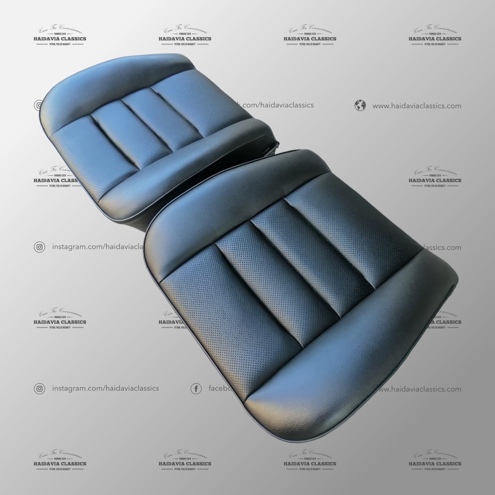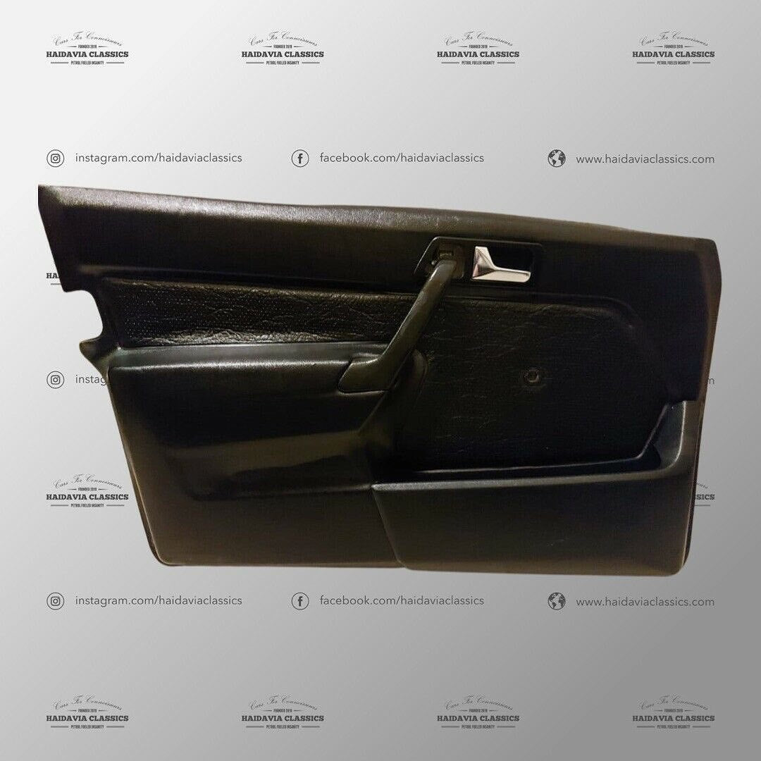 This full black leather interior is designed for the prestigious Mercedes-Benz W201 16V Cosworth model. It epitomizes the brand's commitment to luxury and performance. The interior includes meticulously crafted front seats and a rear bench seat with backrest, ensuring the utmost comfort and support for both driver and passengers. Additionally, the set includes four door cards, each tailored to perfectly fit the vehicle's design and enhance the overall aesthetic.