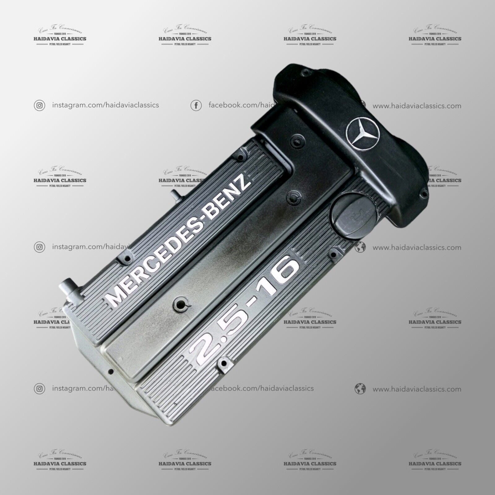 A genuine 2.5-16 engine head cover in excellent condition, specifically designed for the M102 engine. This head cover serves as a protective casing for the renowned 2.5-16 engine head. The 2.5-16 engine head was an impressive iteration of the 2.3-16 engine head that was the result of a remarkable collaboration between the precision and craftsmanship of Mercedes-Benz engineers and the brilliant minds at Cosworth, the British experts in high-performance engines. While the 2.5-16 engine head was developed in-house by Mercedes-Benz without direct involvement from Cosworth, it is based on the same principles that made their collaboration successful. Additionally, we also have 2.3-16 engine covers available in our stock.