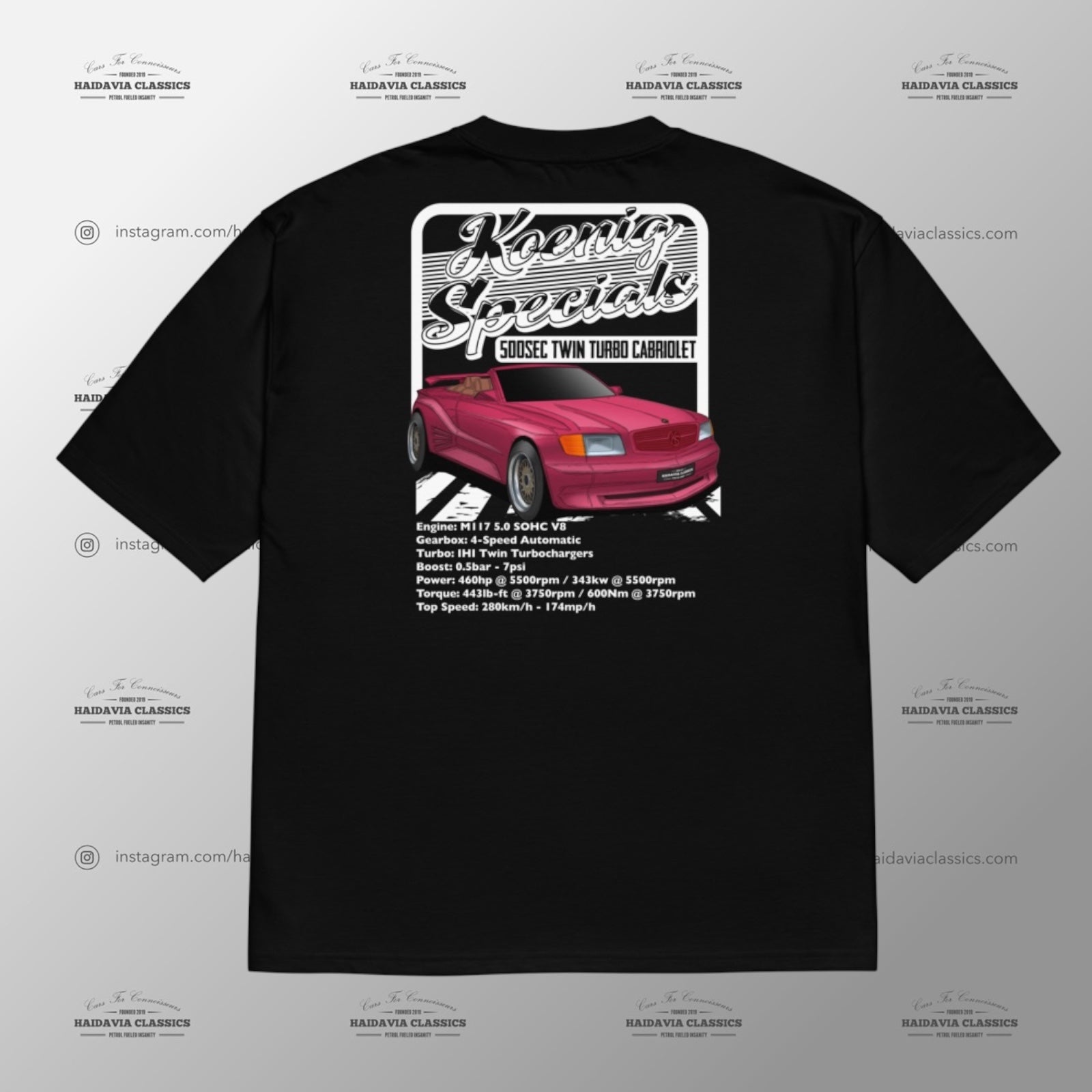 The Koenig Specials 500SEC Twin Turbo Cabriolet was a testament to Koenig Specials relentless pursuit of unmatched performance. In their quest for power, Koenig Specials enlisted the technical expertise of Albrex, further enhancing the turbocharging system. With meticulous engineering and the incorporation of IHI turbochargers, the 500SEC Twin Turbo Cabriolet exuded an unparalleled symphony of power and exhilaration. Celebrate the thrill of turbocharged excellence with this Koenig Specials 500SEC Twin Turbo Cabriolet t-shirt.
