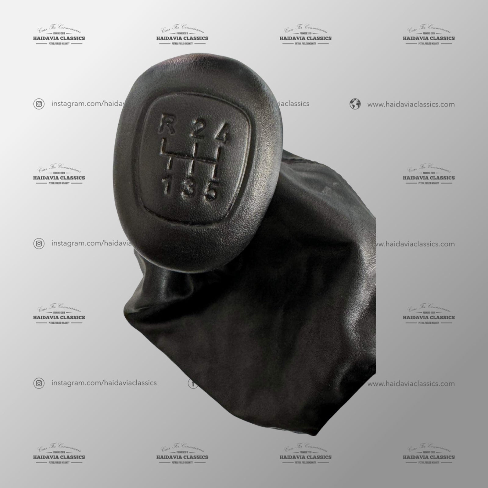 This gear-shifter knob is not an OEM product, but rather a meticulously crafted reproduction of the original. The leather and stitching used in its construction are identical to those found on the original gear-shifter knob. Additionally, the shift pattern stamp is cast from the authentic OEM stamp. If you are interested in originality, we also have original OEM gear-shifter knobs available in stock for the W201 2.3-16 and 2.5-16 models.