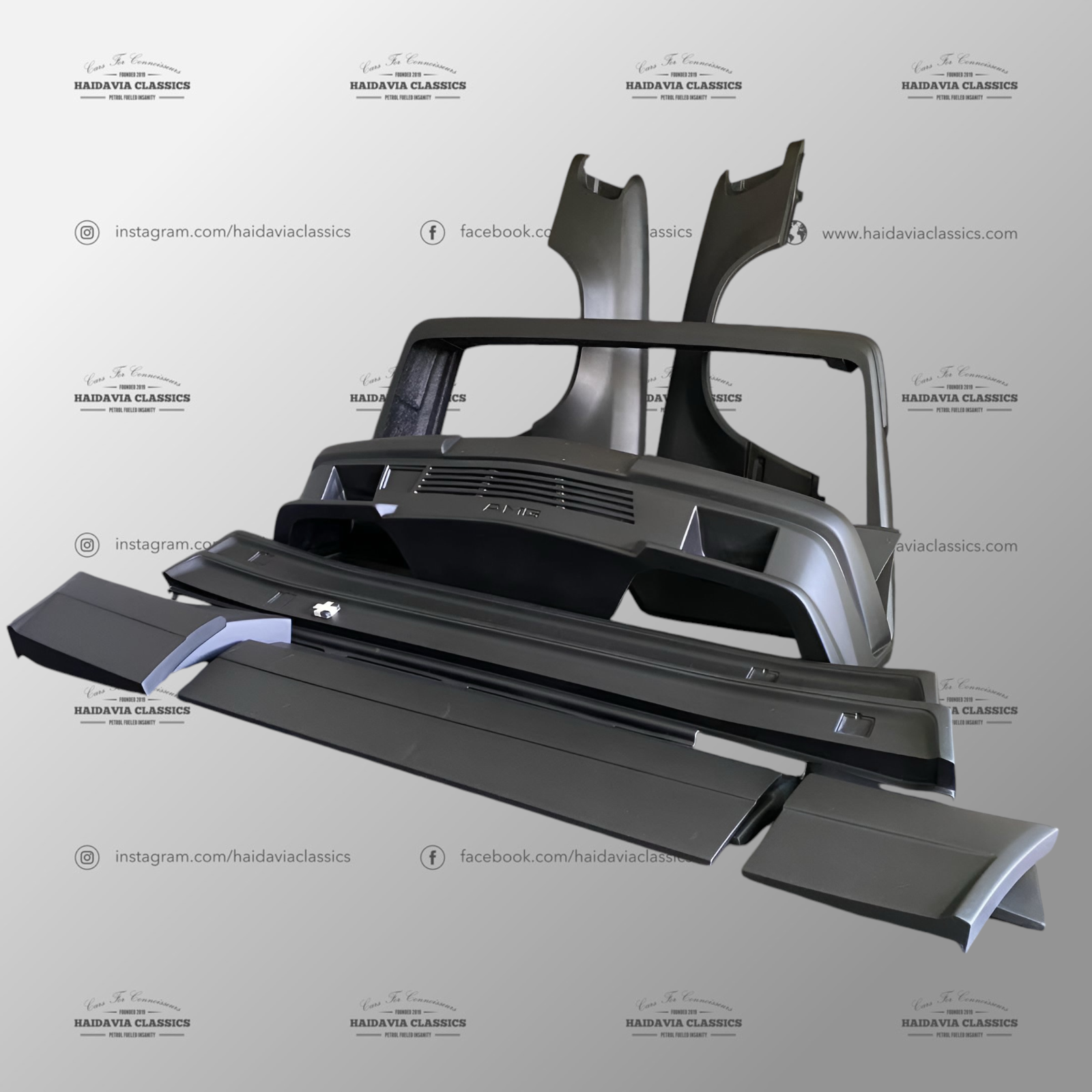 This is a high-quality reproduction bodykit of the W124 300E 6.0 AMG Widebody, based on their OEM counterpart. This kit will fit all C124 models. Each of these parts has been carefully crafted to ensure seem-less fitment. The parts will be primed and ready for paint.